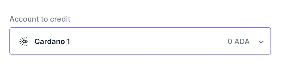 ドロップダウンリストで、カルダノ(ADA)を選択し、継続をクリックします。