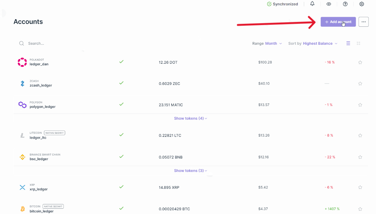 レジャーライブがアカウントを同期するのを待ってから、[アカウントを追加]をクリックします。