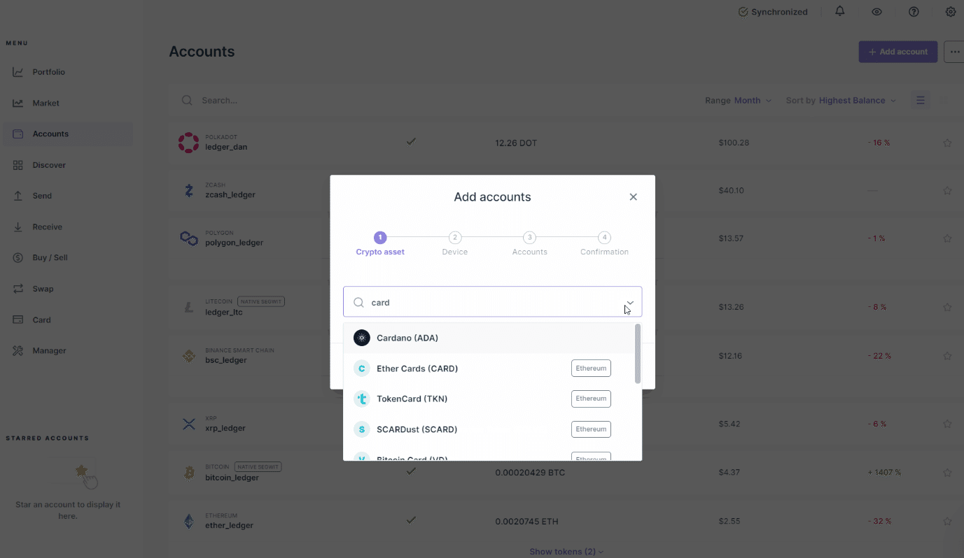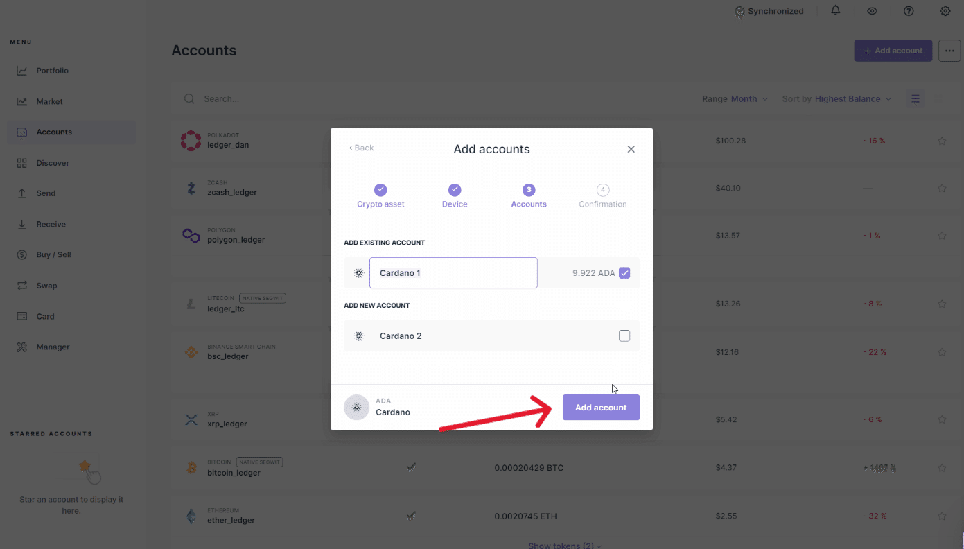 カルダノ(ADA)アカウントが消えるのを待ってから、アカウントタブに移動し、アカウントの追加をクリックします。