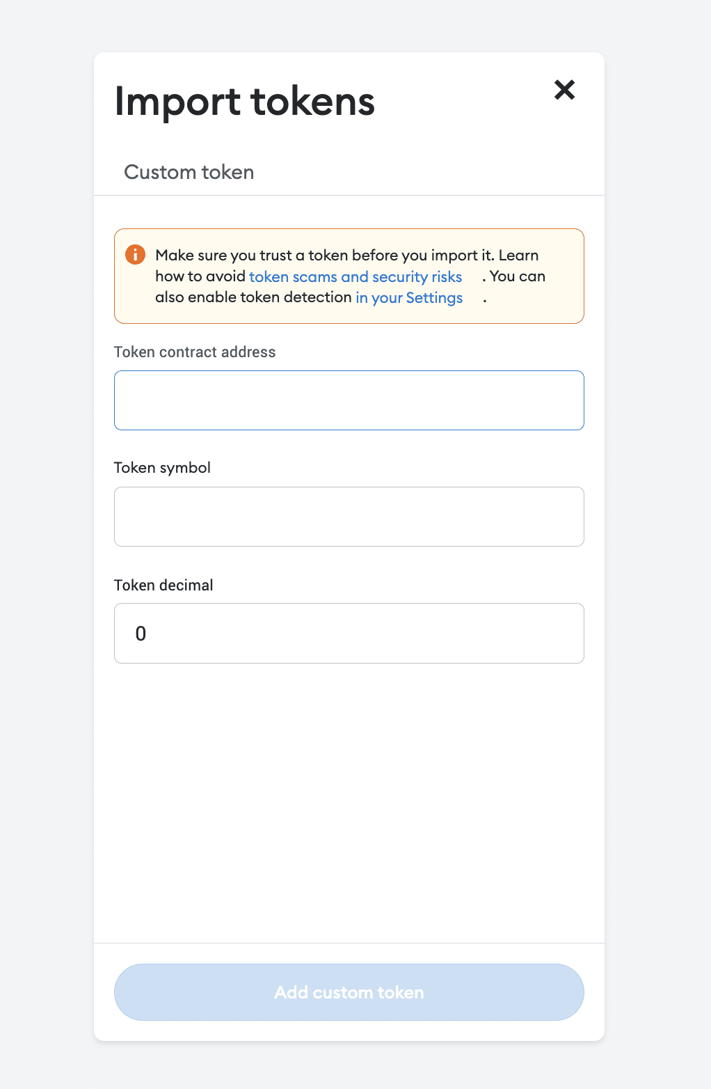 それでもフィンドラトークンが表示されない場合は、フィンドラトークンをメタマスクのコントラクトアドレスを持つカスタムトークンとして追加する必要があります。メタマスクでフィンドラネットワークに切り替え、[カスタムトークンのインポート]をクリックしてから、トークンコントラクトアドレスを貼り付けて、[カスタムトークンの追加]をクリックします。