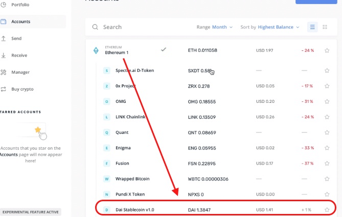 Ethereum(ETH)アカウントをクリックして、[受信]を選択し、DAIを入金するために使用できるEthereum受信アドレスを生成してください。