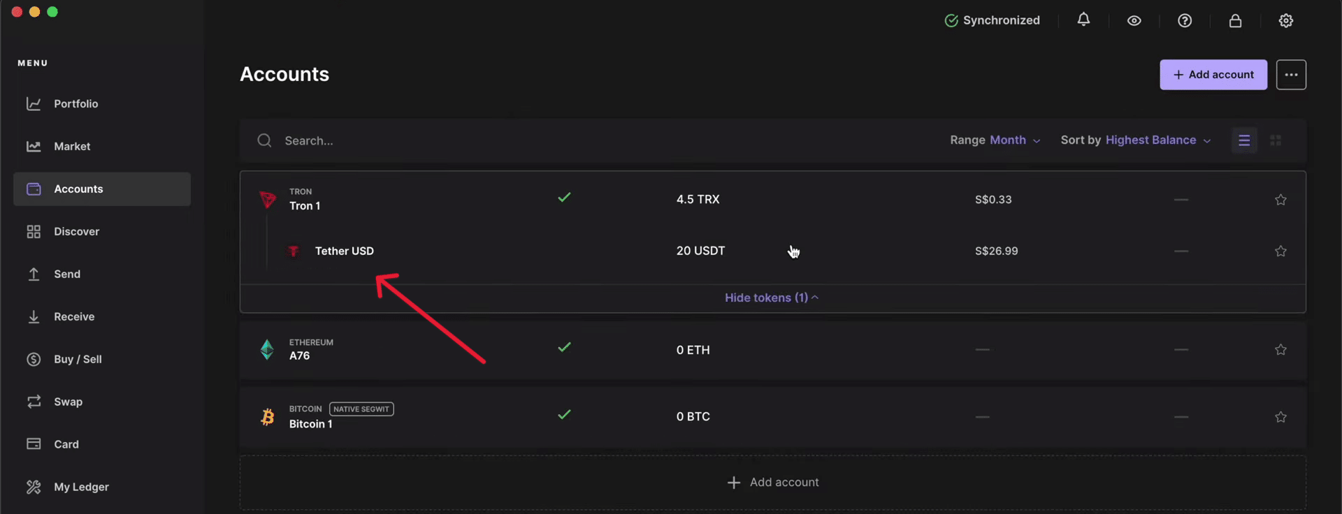 これで、Tron(TRX)アカウントがアカウントリストに表示されます。Now your Tron (TRX) account will be visible in your account list.