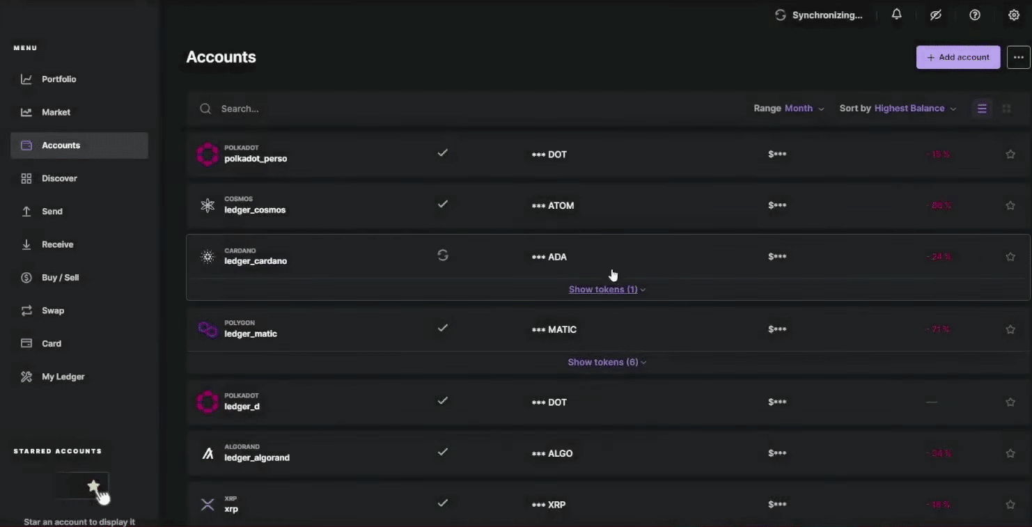 取引が確認および完了されると、Ledger Liveのアセットアカウントに移動し、暗号通貨がそこにあるはずです。