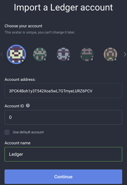 レジャーのNano SまたはNano Xデバイスを接続し、Wavesアプリを起動します。これにより、一意の導出パスとパスフレーズを持つ新しいWavesアカウントがLedgerに生成されます。この情報を他の誰とも共有しないでください。Ledgerは、Wavesアカウントからのすべての取引を承認するための主要な署名要件として機能します。