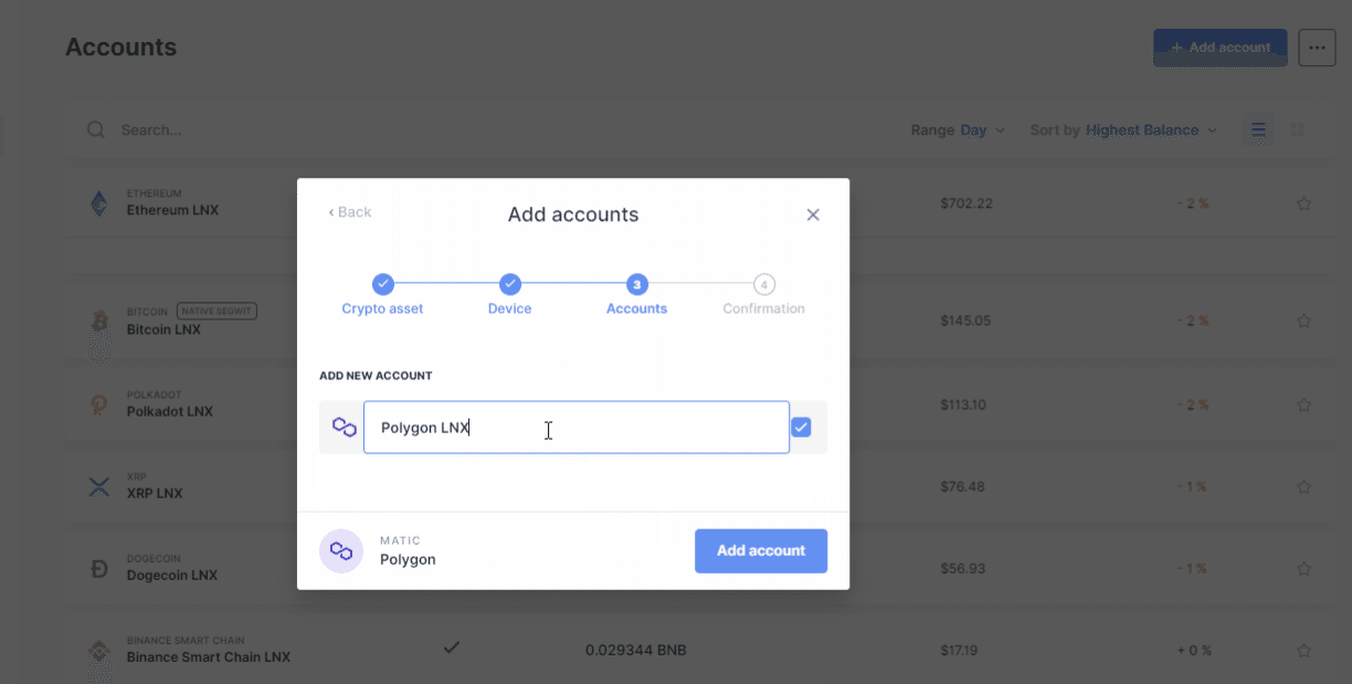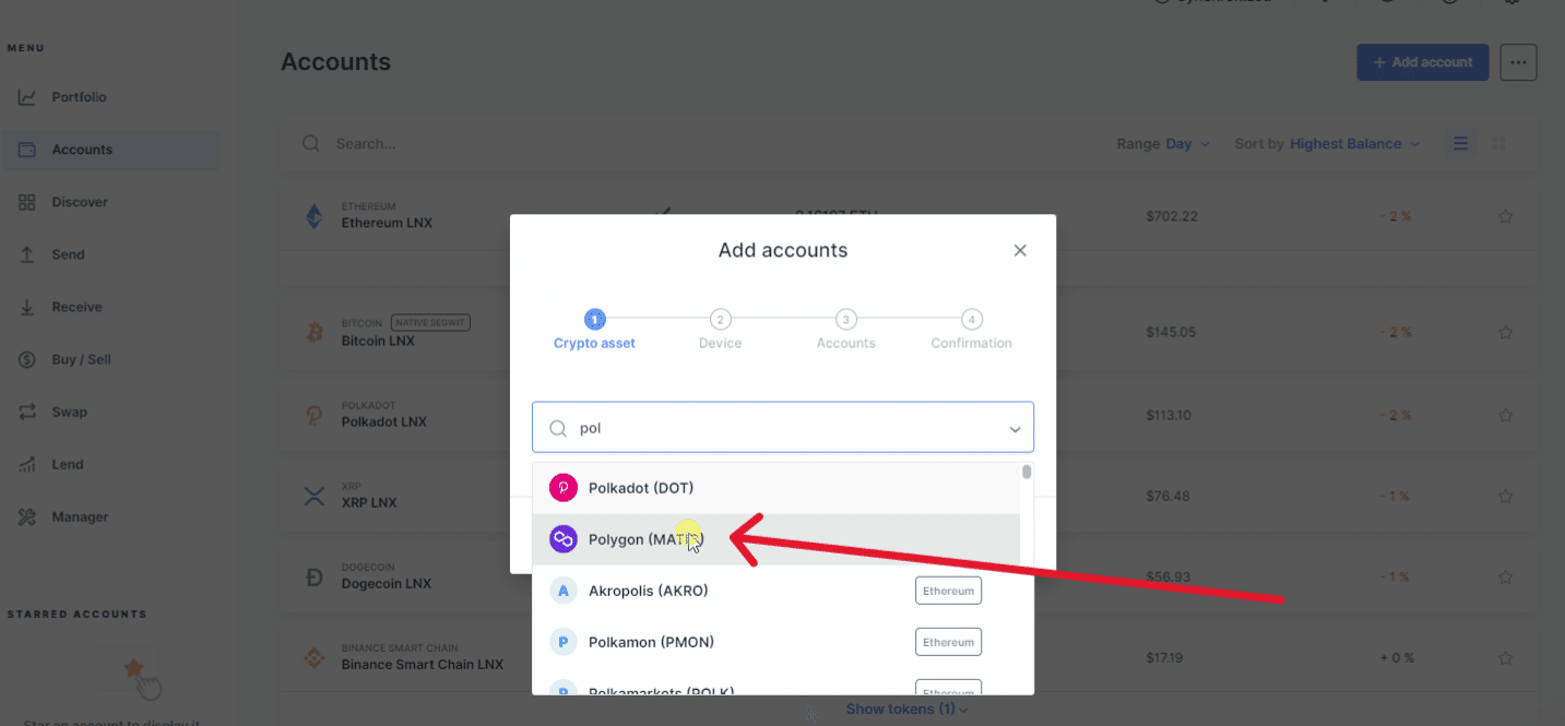 Ledger LiveでPolygon (MATIC) アカウントを作成する方法