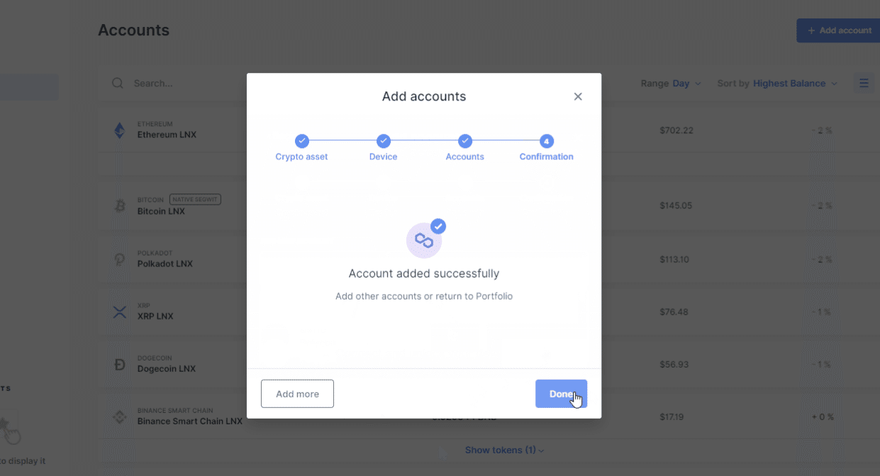 これで、Ledger LiveのPolygon(MATIC)アカウントの追加は完了です。