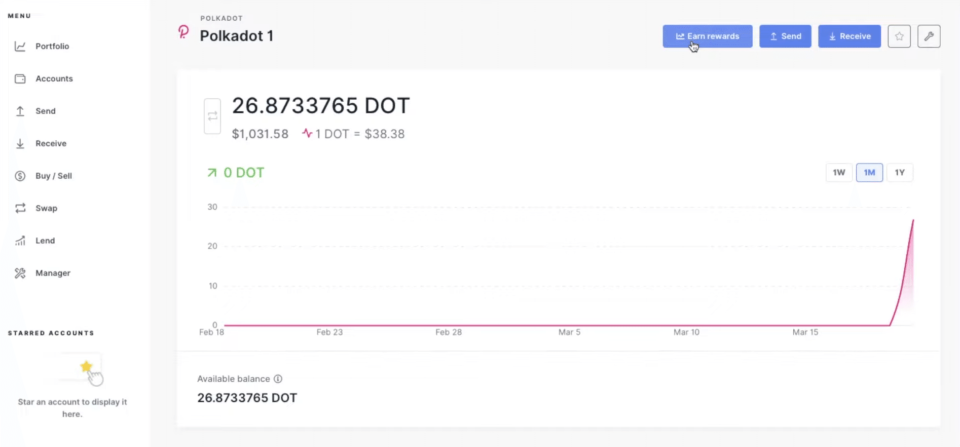 ポルカドットアカウントページに移動し、「報酬を獲得する」ボタンをクリックします。