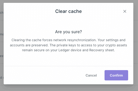 レジャーライブキャッシュには、破損する可能性のあるネットワークデータが保存されます。設定に移動し、クリアキャッシュをクリックします。レジャーとレジャーライブを再起動します。