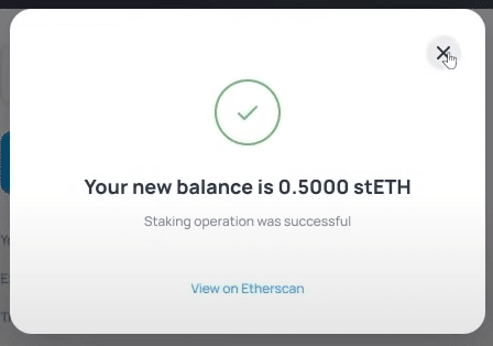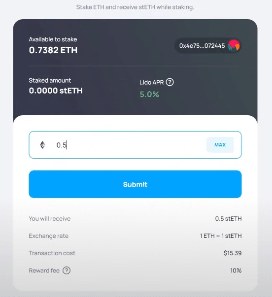 あなたのETHはリドステーキング契約に入金され、あなたは1:1の比率であなたのウォレットにstETHを受け取ります。