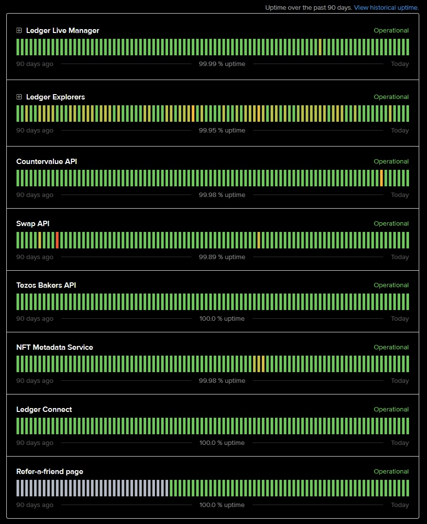 レジャーのサーバーが現在動作しているかどうかを確認するには、レジャーステータスにアクセスしてください。場合によっては、一時的なパフォーマンスの低下や中断が発生することがあります。