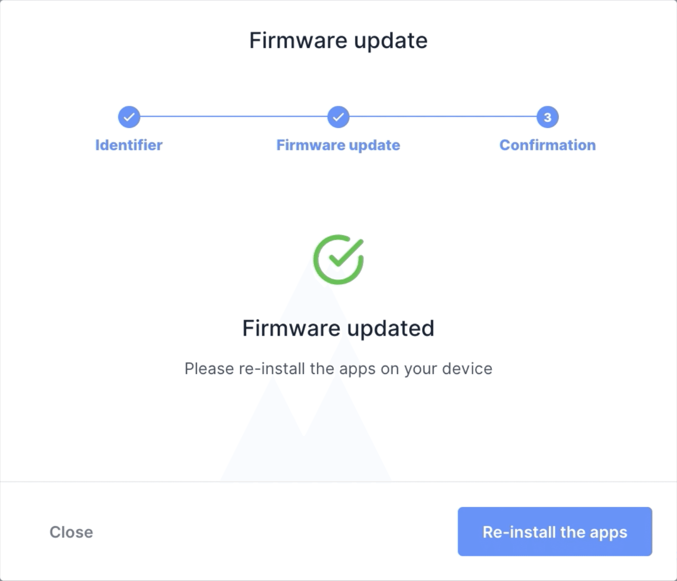 レジャーウォレットをリセットするには、USBケーブルを取り外し、画面の電源がオフになるまでデバイスの両方のボタンを同時に数秒間押し続けます。30秒待ってからUSBケーブルを再接続し、ボタンをもう一度押し続けて、通常どおりレジャーの電源を入れます。これにより、ウォレットのファームウェアとネットワーク接続が更新されます。