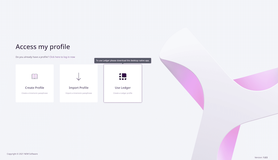 Symbol Wallet内で[自分のプロフィールにアクセス]を選択し、[Ledgerを使う]を選択します。画面に従ってLedgerデバイスの接続を承認します。これでLedgerのウォレットアドレスをSymbol Walletアプリに連携できます。