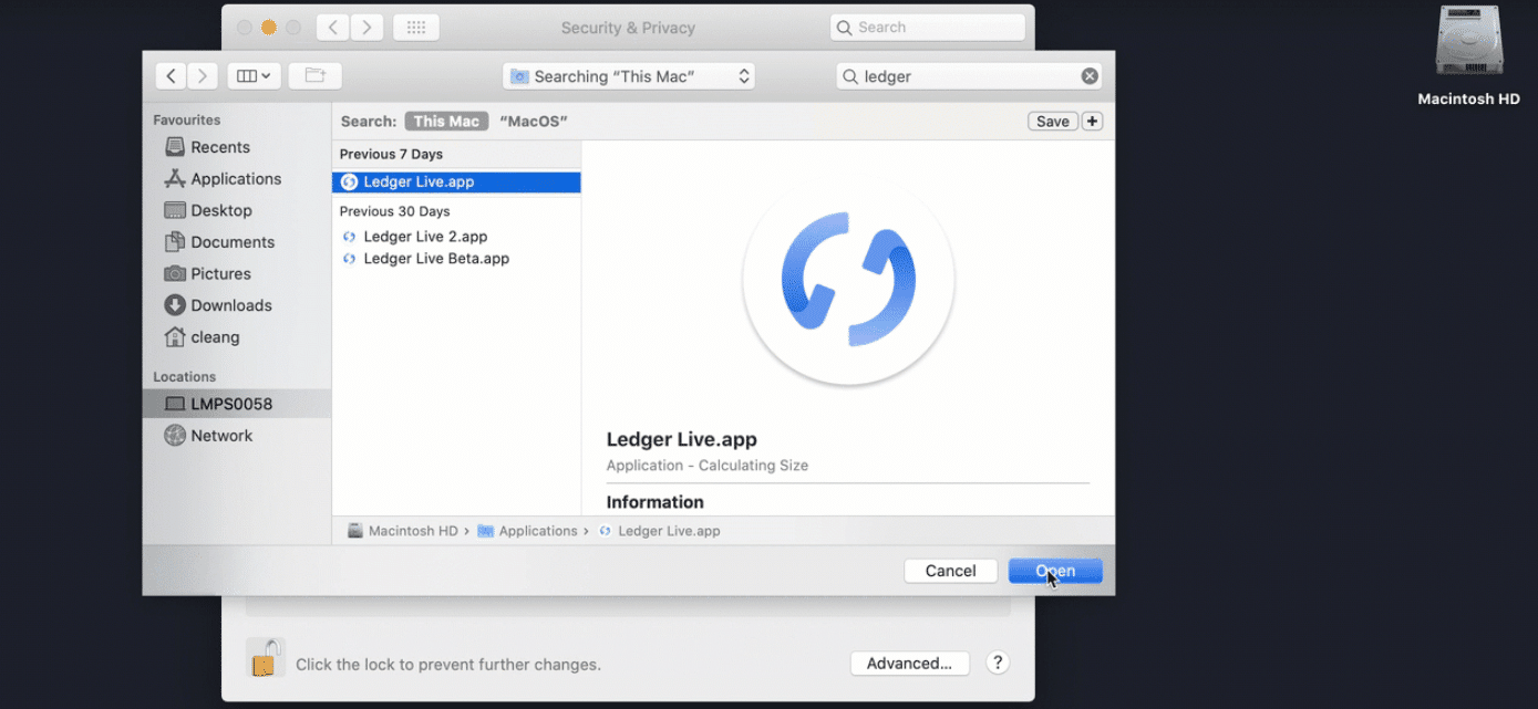 次に、プラス記号をクリックして、検索バーにレジャーライブと入力します。[開く] をクリックして、フル ディスク アクセスに追加します。