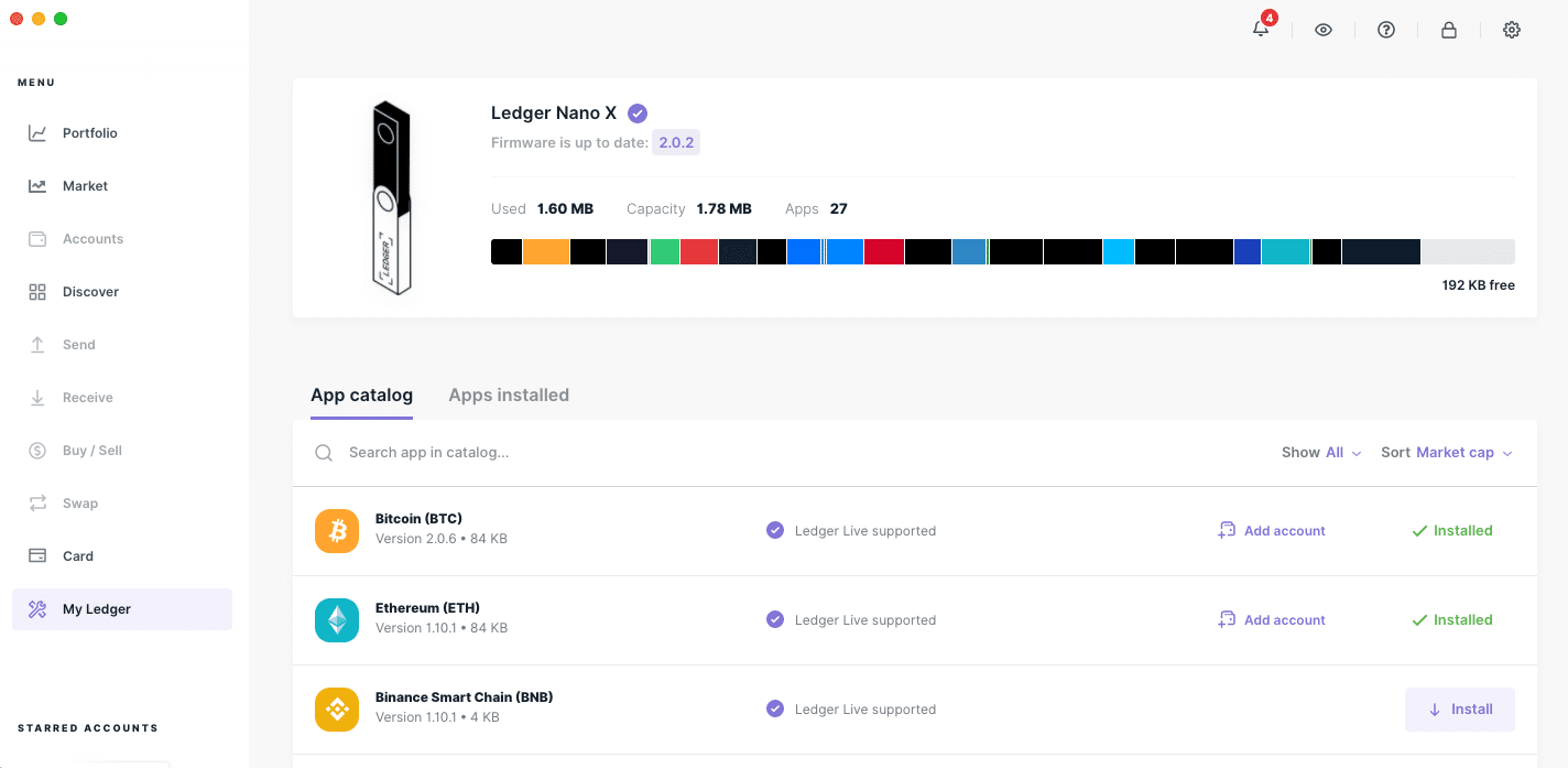 Ledger LiveまたはLedgerデバイスのファームウェアが古いため、アプリがMy Ledgerにない