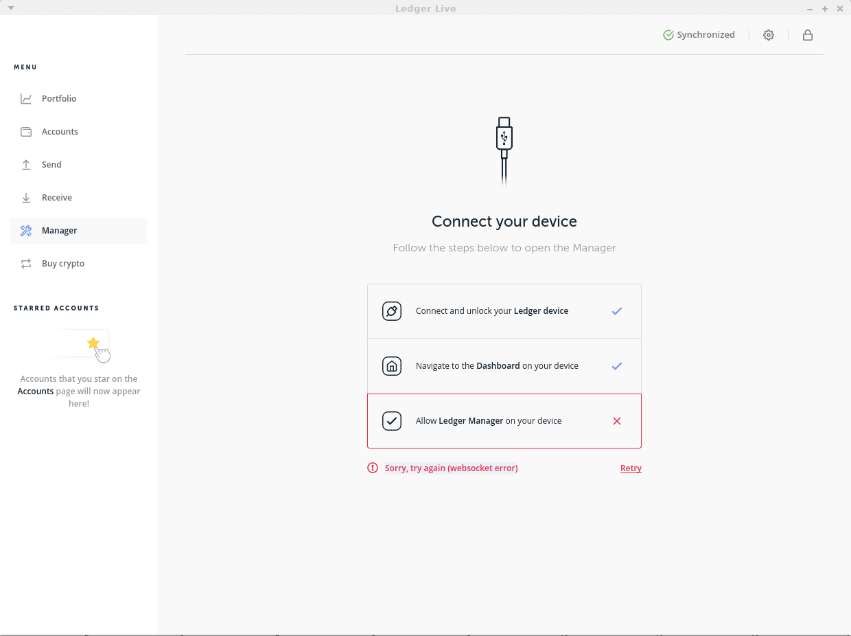 LedgerデバイスとLedger Liveの間に接続問題がある場合、Websocketエラーが発生する可能性があります。これは、ユーザーが制限されているインターネット接続を使用して、Ledger Liveにアクセスしようとしているからです。