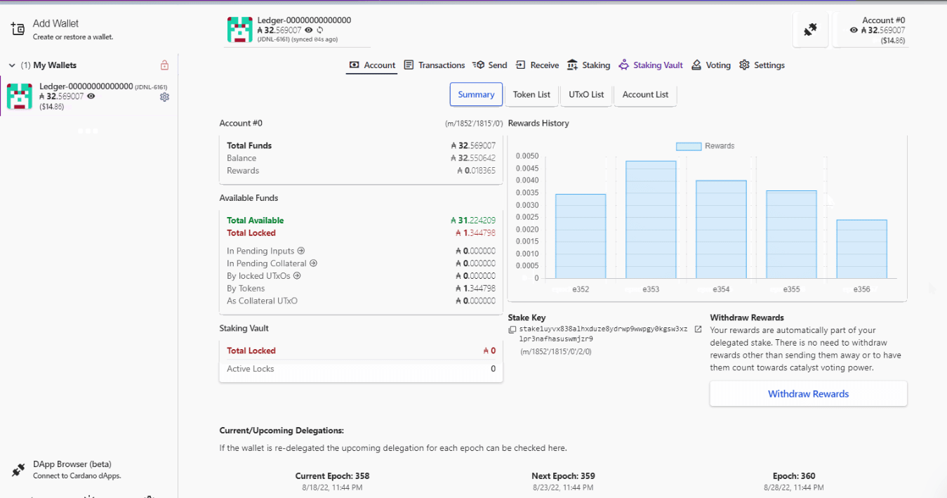 LedgerのCardanoアカウントに、正しいADA残高が表示されます。