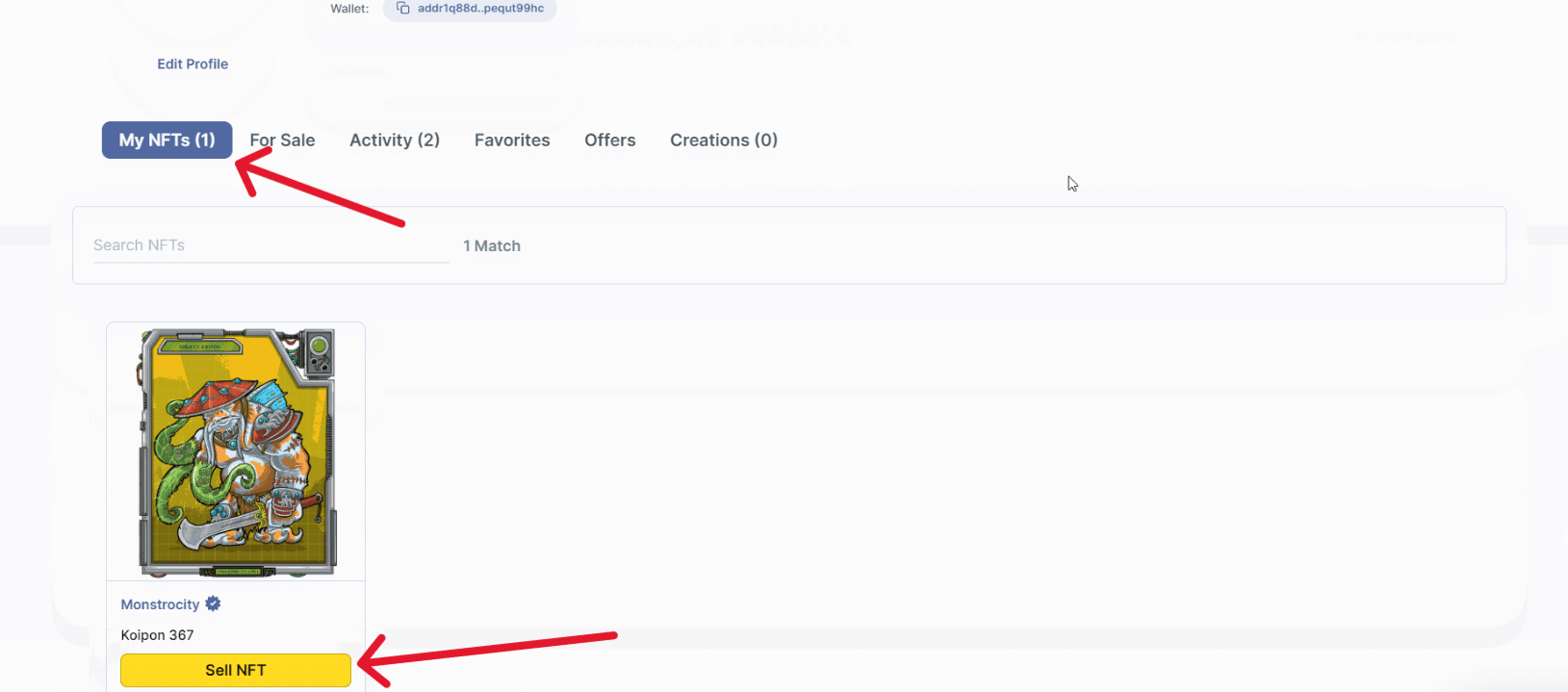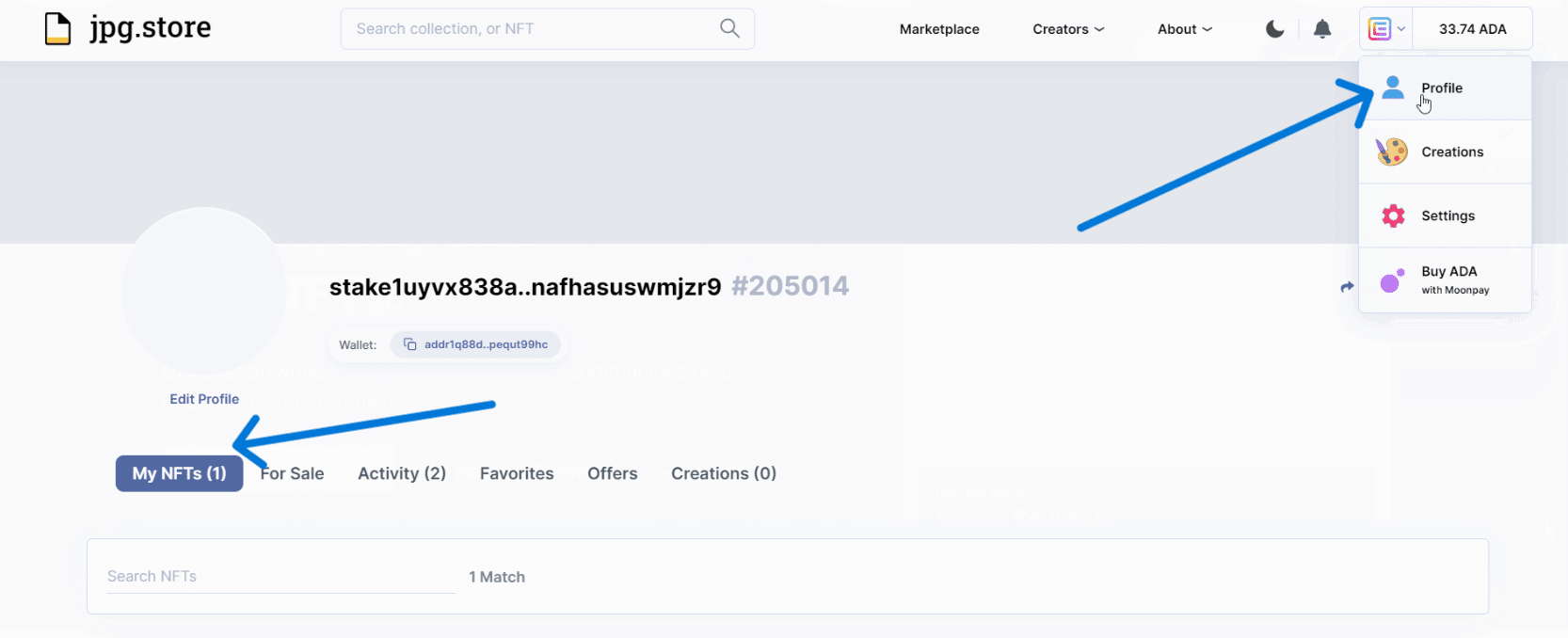 お客様のプロファイルに移動し、「My NFTs」をクリックします。