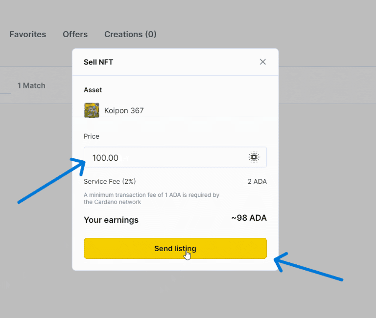 売りたい価格を追加して、「出品を送信」をクリックします。