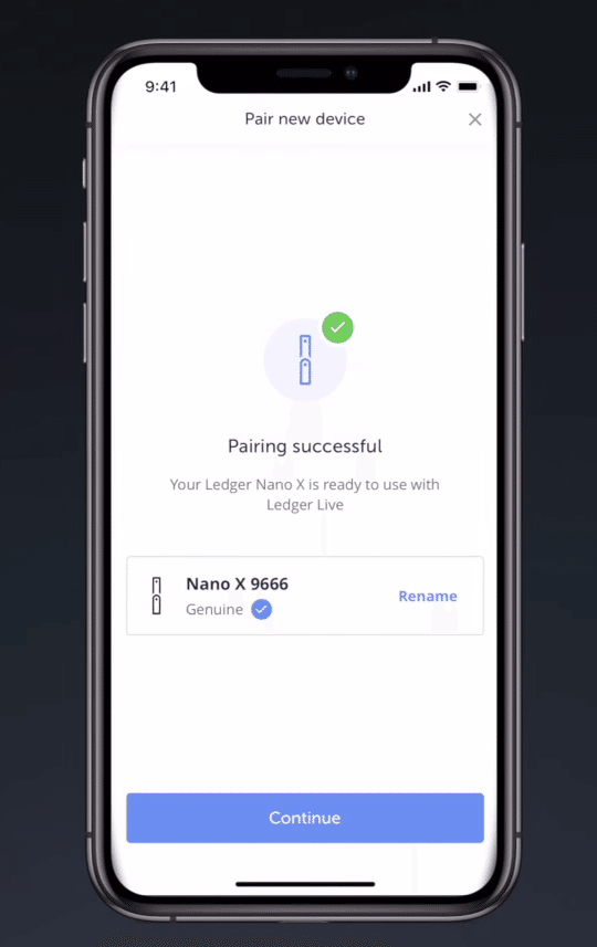 Ledger デバイスの信頼性が Ledger の安全なサーバーによってチェックされるのを待ち、ペアリング プロセスが完了します。