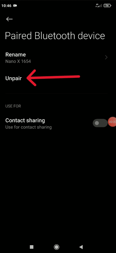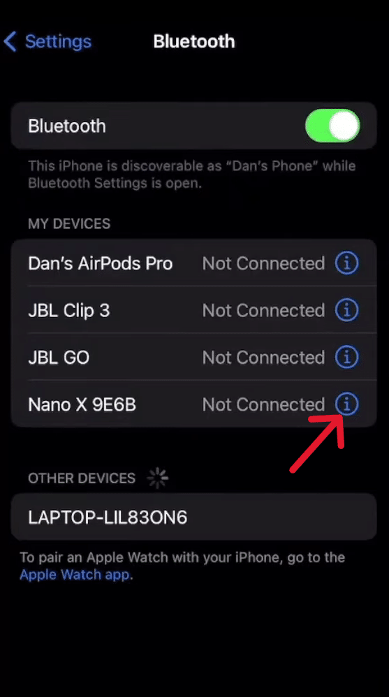 ペアリング履歴に移動し、Ledger デバイス名 (Ledger Nano X など) を見つけます。