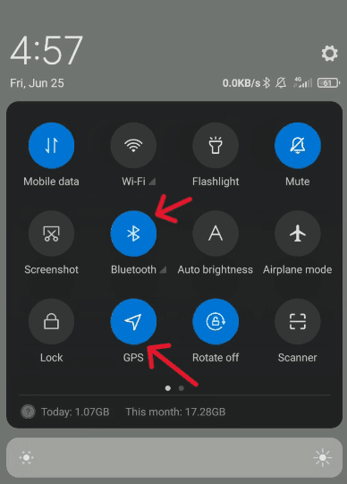 スマートフォンで Bluetooth と位置情報サービスを有効にします。