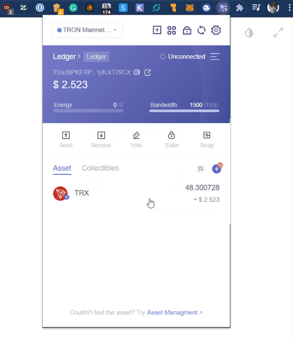 Ledger端末にTron(TRX)アカウントをお持ちの方は、アカウントをTronlinkに簡単に接続し、そこからLedgerのTRX資産を直接管理することができます。