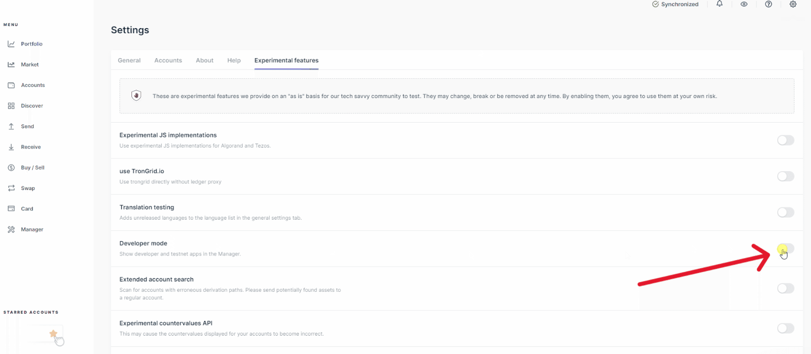 Ledger端末にETH回復アプリをインストールする前に、開発者モードを有効にすることを確認してください。