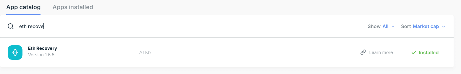 アプリのインストールは、「My Ledger」からEth回復アプリをインストールします。