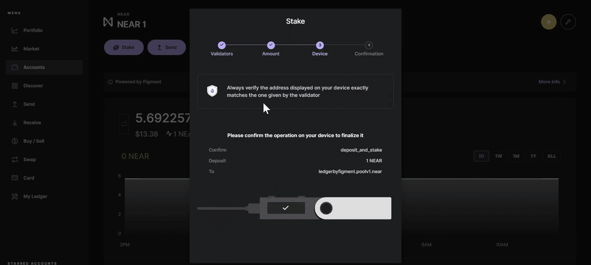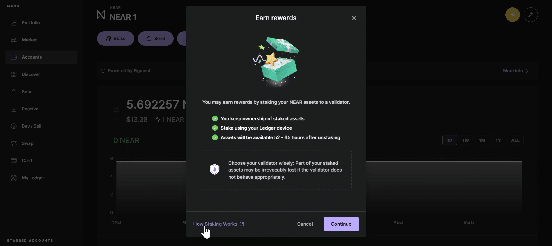 Ledger LiveにNERA資産をステークすることで、ネットワークの安全確保に貢献するパッシブ報酬を得ることができます。FigmentとLedgerとのパートナーシップにより、ステークしたいNEARトークンを簡単に管理し、安全に委譲することができます。