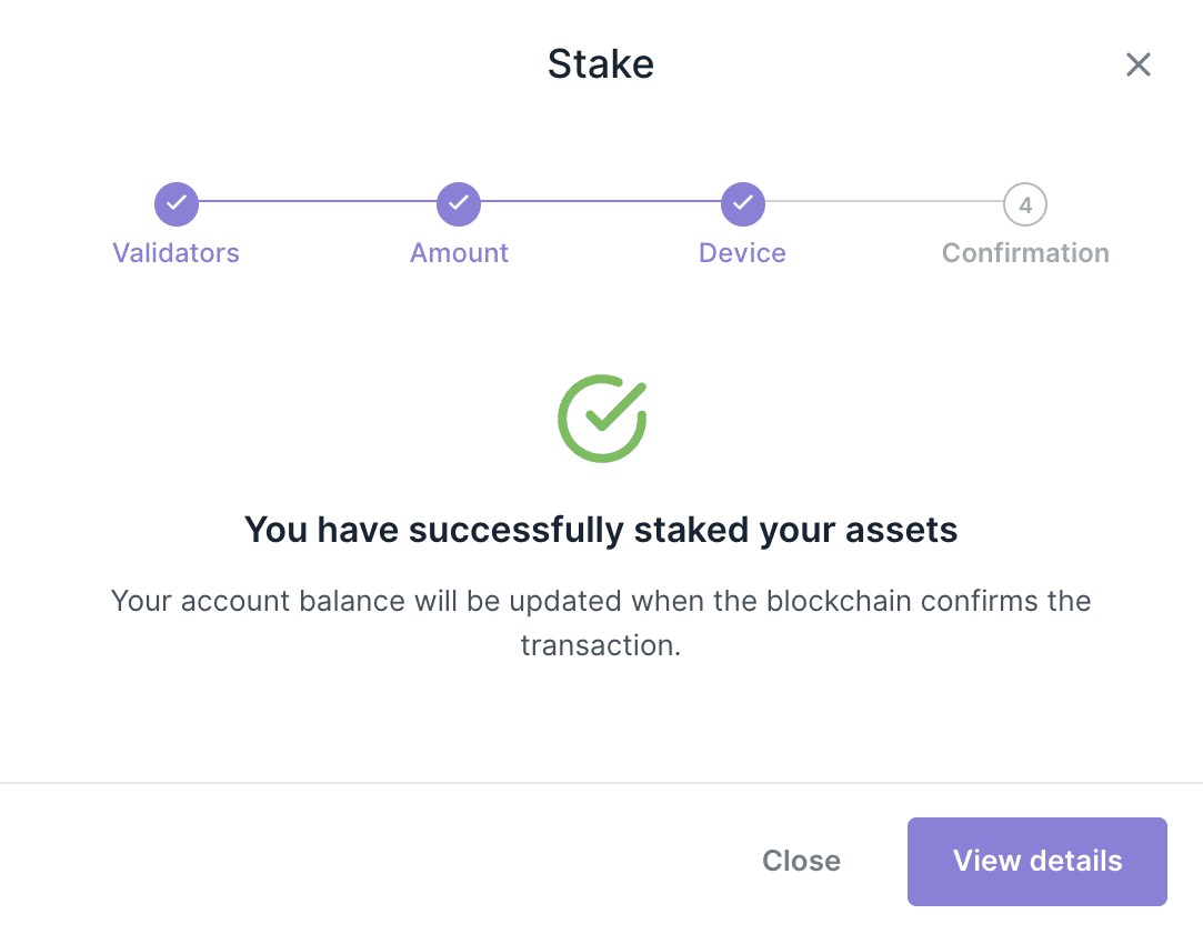 処理が終了すると、NEAR資産のステイクが成功したことを確認するメッセージが表示されますので、そのままお待ちください。