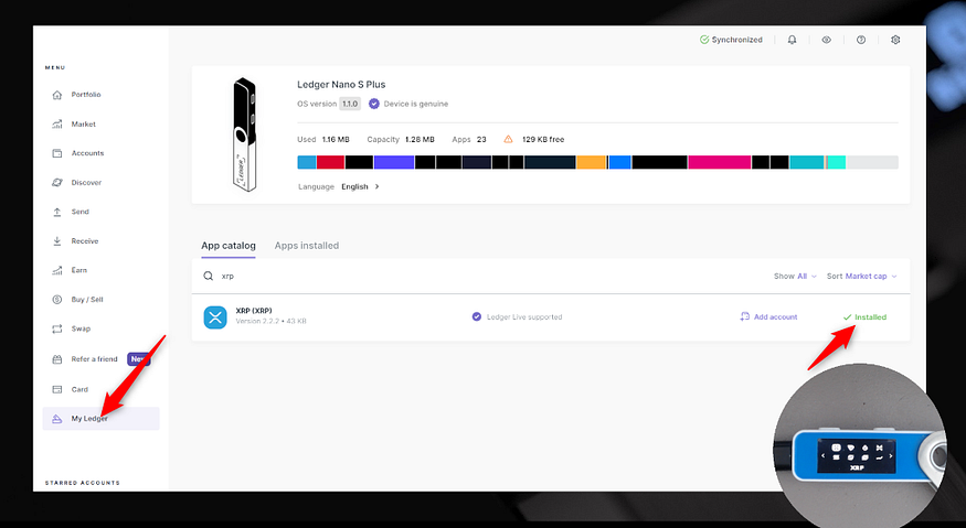 - Ledger Liveには「インストール済み」と表示されます。