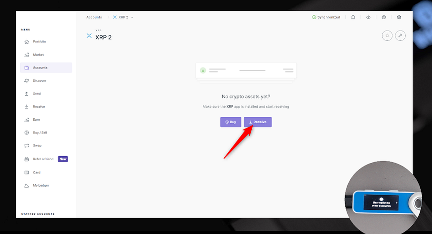 - これで準備完了です。このアドレスを使用してXRPコインをLedgerアカウントに送付できます。