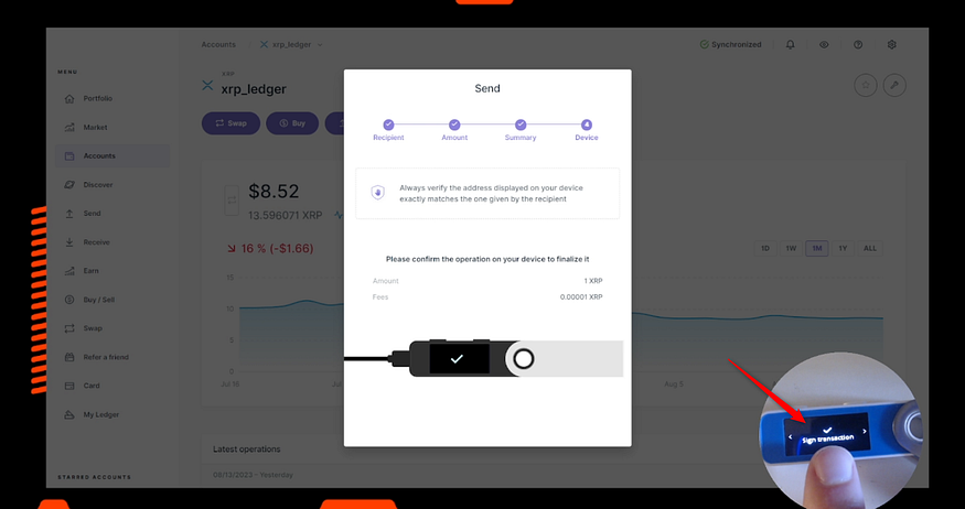 - LedgerのXRPアドレスに10XRPを送金すると、XRPアカウントが有効化されます。