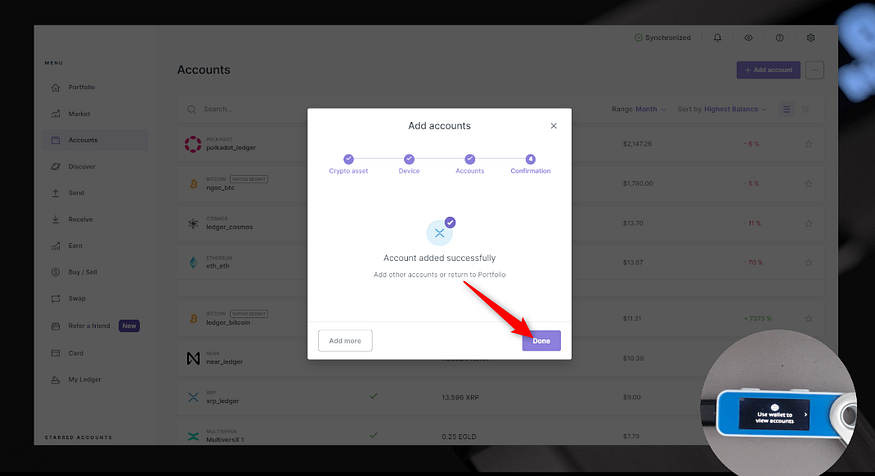 - アカウントに名前を付け、「アカウントを追加」をクリックして、Ledger Liveへのアカウントの追加を完了する。