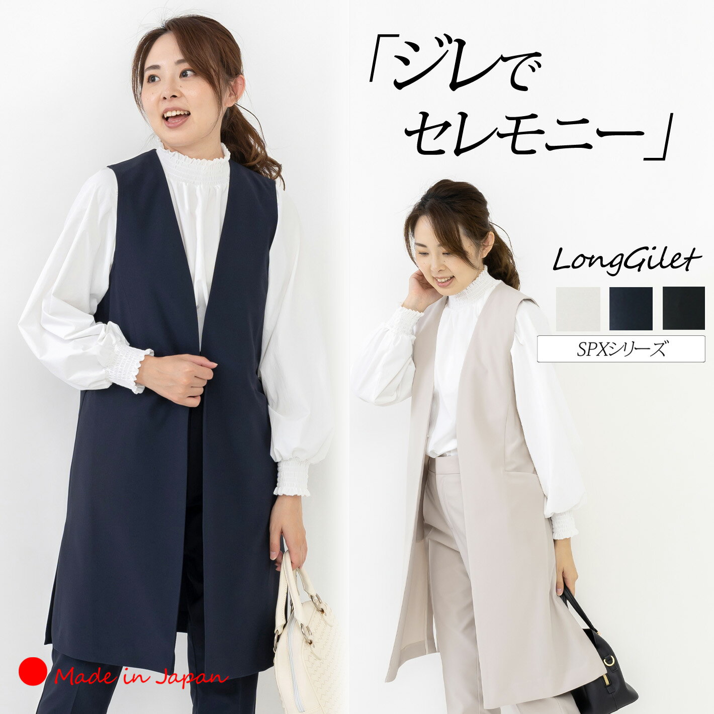 【 日本製 】ジレ ロングジレ ロングベスト レディース トレンチベスト ノーカラー ロング丈 ミドル丈 ベスト 大きいサイズ フォーマル パンツスーツ セットアップ 卒業式 40代 30代 50代 七五三 入学式 ママ 母 【SPXロングジレ】<8030>楽天市場9,980円${EVENT_LABEL_01_TEXT}