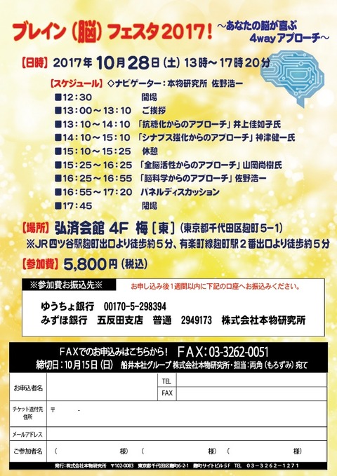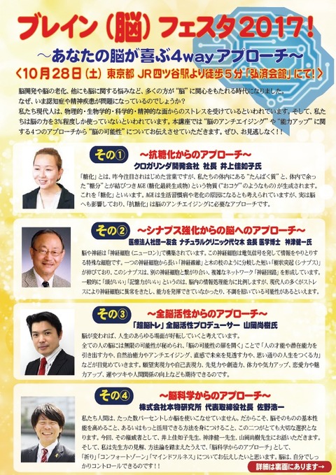 脳についての最新情報脳について最新の情報を手にしませんか?もはや認知症も怖くありません。地球には毒を出す植物の近くに毒を消す植物が必ず生えていると言いますよね。人間が勝手に作った病気にも、それをなんとかしてくれる植物が地球上にはあったのです。そんな信じられないかもしれない話が普通に交わされる講演会。残席4名だそうです。