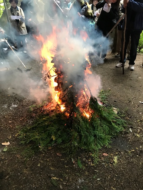 湿った木になかなか火が点かなくてここまで燃えるのに時間が掛かったけれど皆の思いは天に届いたはず。