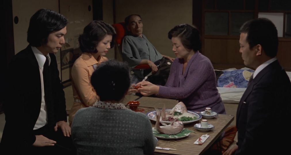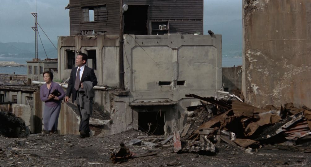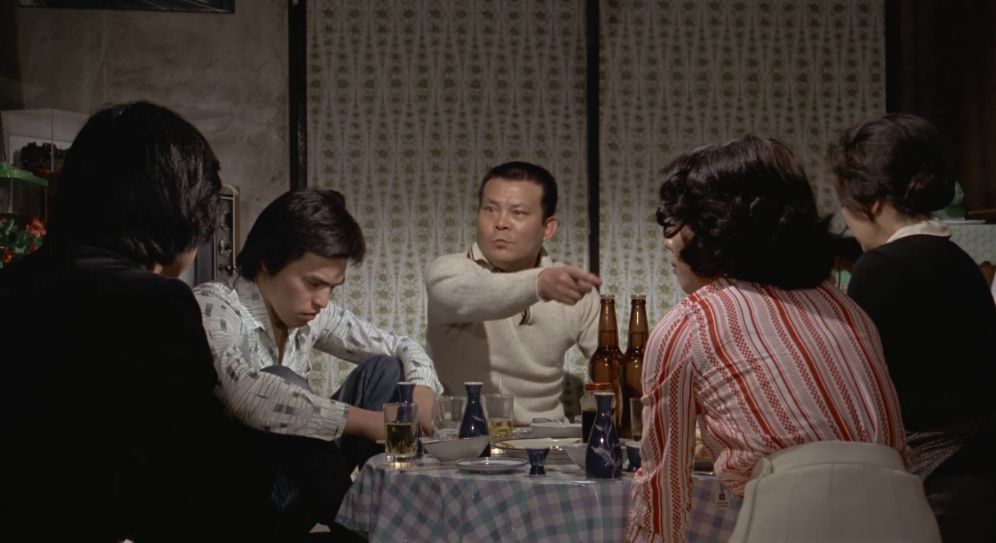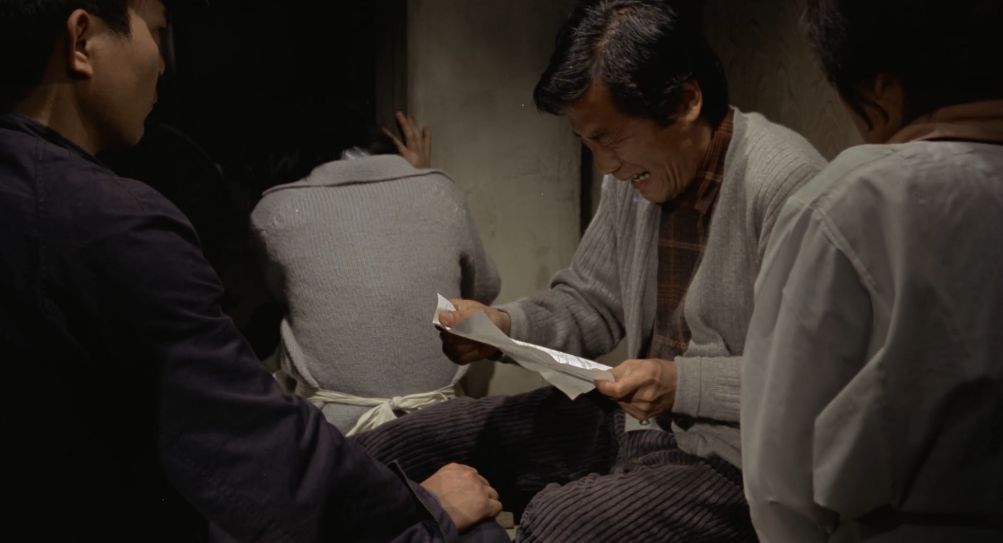 他の職員たちも生活が苦しいのは同じ。労働組合活動が活発となって、家庭を守る主婦たちも一丸となって待遇改善を訴えます。やがて、生産性を追求する国鉄側の方針に反対する"反マル生闘争"が激化。そんな折、車掌をしていた岩田が車両トラブルに巻き込まれて右足切断の重傷を負います。組合幹部となった市蔵と共に活動していた岩田でしたが、組合の弱体化を狙う国鉄側の引き抜き工作によって組合員として闘い続けるか、甘い誘惑に乗って生活の安定を求めるか、岩田(前田昌明)苦渋の決断を迫られます。大人たちが苦労して生活を守ろうとする姿を見て、社会人へと成長していく由紀と徹。ここでまた現代に戻って、由紀が父の同意を得られないまま、佐多の故郷で結婚式をを強行することを佐多の知人(西田敏行)から聞いた里子。その状況をそれとなく察した市蔵は、営林署で懸命に国有林の間伐作業に没頭する佐多の姿をこっそり見に行ったことで考えを改めたのか、里子と一緒に長崎での結婚式に立ち会うことを決断します。佐多が生まれ育った端島(軍艦島)の廃墟となった土地を訪れた市蔵は、沈む夕日を見ながらこれまでの人生に想いを馳せて・・・というのが大まかなあらすじ。