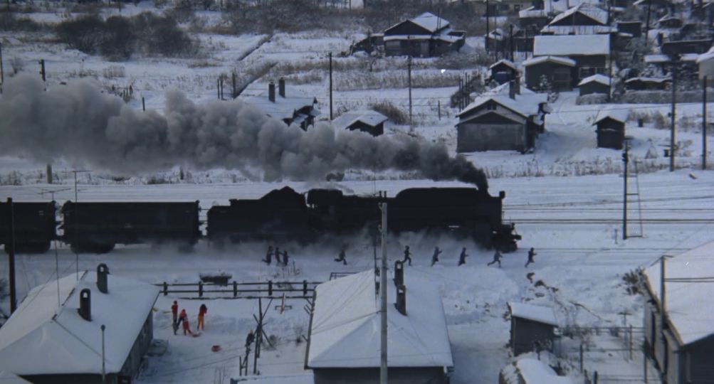 劇場公開は1977年9月11日。製作にクレジットされている国鉄労働組合が1億円を出資して、左幸子が唯一監督したという珍しい作品。全面協力だから可能になった鉄道場面の数々。実際の国鉄職員のインタビュー音声・映像もドラマの合間に挿入されます。線路を守る仕事を地道に続けてきた市蔵。長らく闘ってきた雇用側から永年勤続表彰をされて、誇りに感じる一方で複雑な思いも頭をよぎります。そこに舞い込んできた娘の結婚話で理不尽にブチ切れて、昭和のガンコ親父丸出しになる市蔵役の井川比佐志はベストの配役。内助の功でずっと支えてきた妻は監督自らが演じています。嫁ぐ日の若い姿も自作自演。市毛良枝と長塚京三の若々しさも見どころの一つ。そして、かつて炭鉱需要で賑わった軍艦島(1974年に閉山したばかり)の寂れた風景がたっぷり映ってるのもとても貴重でした。重労働現場の遺産となった軍艦島の姿に国鉄の行く末を重ねたのか、市蔵が永年勤続表彰でもらった腕時計を海に投げ捨てるという「ダーティハリー」のエンディングみたいなシーンで映画は終わります。