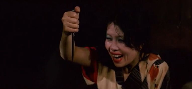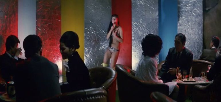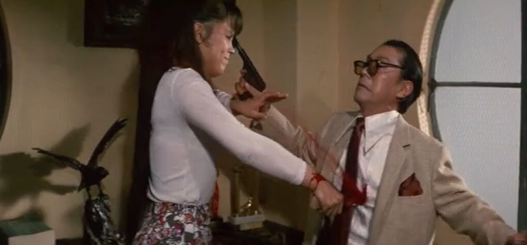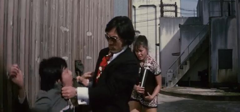 とにかく、5分に1回くらいのペースでデタラメに話が進んでいく中、リカは鑑別所の優しい沼田先生(津嘉山正種)にひそかに恋心を持っている描写があったりしながら、因縁のライバル令子と戦っている時に、別の先生を過失で殺害してしまいます。で、また脱走したリカは、先に脱走した令子を追ってる時に、波止場でまた一匹狼の鉄と再会。立花組のバックにいる大阪組と戦うつもりでいる鉄と共同戦線を張ったリカ。その後、令子から呼び出しを受けて決闘する直前に大阪組に捕われるも、鉄に救出されて愛し合う二人。その頃、リカの母は麻薬中毒と梅毒でスラム街で廃人になっていて、母にかつての愛人を殺させたりもしてるうちに、最後は、リカと鉄が大阪組のアジトに乗り込んで、囚われていた令子と共に大乱闘を繰り広げて・・・というのが大まかなあらすじ。