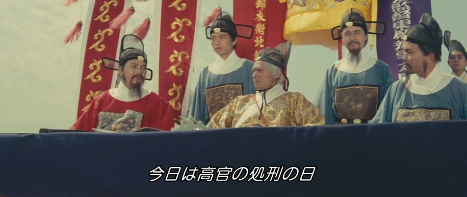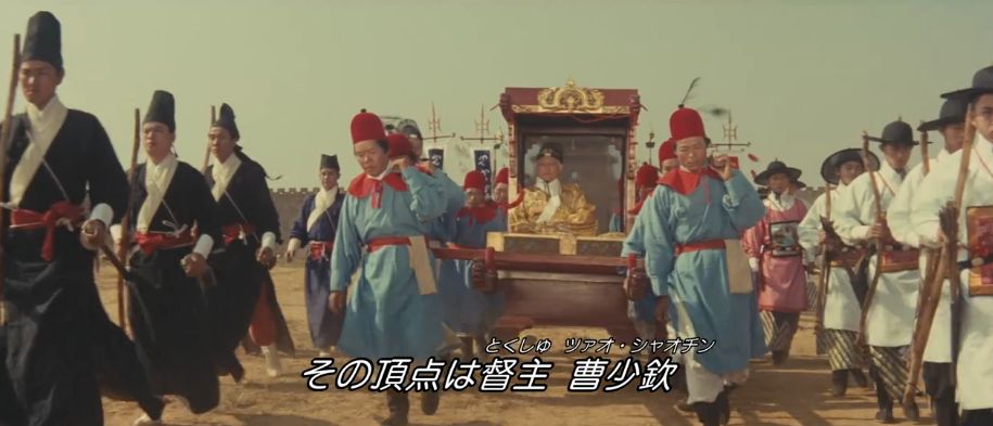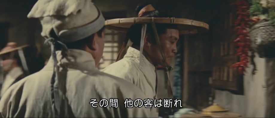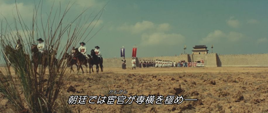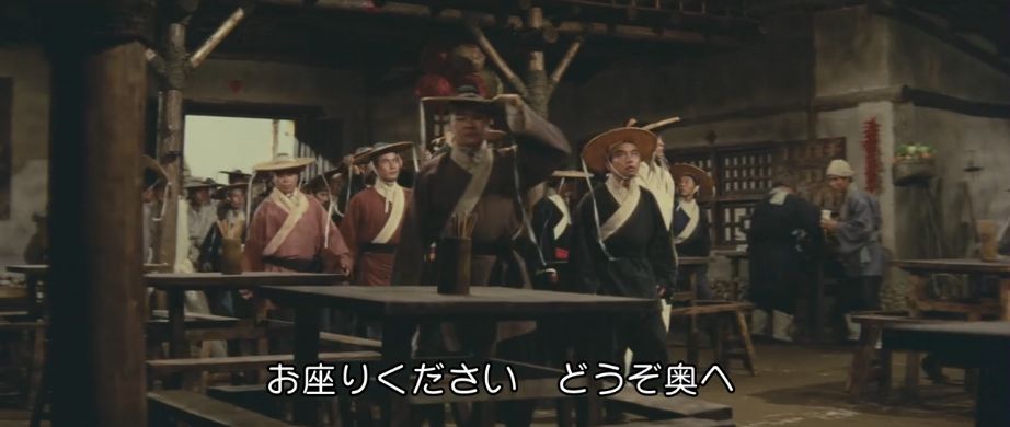 15世紀中頃、明朝時代の中国が舞台。政治の実権を握っていた宦官集団が暴虐の限りを尽くしていて、錦衣衛(皇帝直属の軍警)と東廠(宦官を長とする特務機関)の二大機関を統率する宦官ツァオ(パイ・イン)が、一の統領ピイ(ミャオ・ティエン)と二の統領マオ(ハン・インチェ)以下、腕の立つ猛者たちを配下に置いています。ある時、皇太子の師でもある人格者の軍事大臣ユイに濡れ衣を着せて処刑。その遺族も僻地の龍門に流刑にしますが、用心深いツァオはユイの遺族が将来的に刃向かうことを恐れて、流刑地で待ち構えて皆殺しにするようにと部下たちに命令。ピイとマオは30人近くの部下を引き連れて、龍門の荒野にポツンとある宿(龍門客桟)で待ち伏せします。突然訪れた屈強な来訪者の軍団に驚く従業員たちは、宿までの道中で荷物運びをした者たちを皆殺しにする様子を見て恐れおののきます。自分たちが数日間泊まる間は誰も中に入れるなというピイの要求も黙って受け入れるしかありません。しばらくして、ユイの遺族を探すためにピイとマオたちが外出していたタイミングで、正体不明の風来坊(シー・チュン)が宿を訪れます。宿に居残り組のコワモテの男たちを無視して、平然と食事を注文する風来坊。ピイの命令通り、そのふてぶてしい邪魔者を抹殺しようとするも、逆に撃退されてしまいます。
