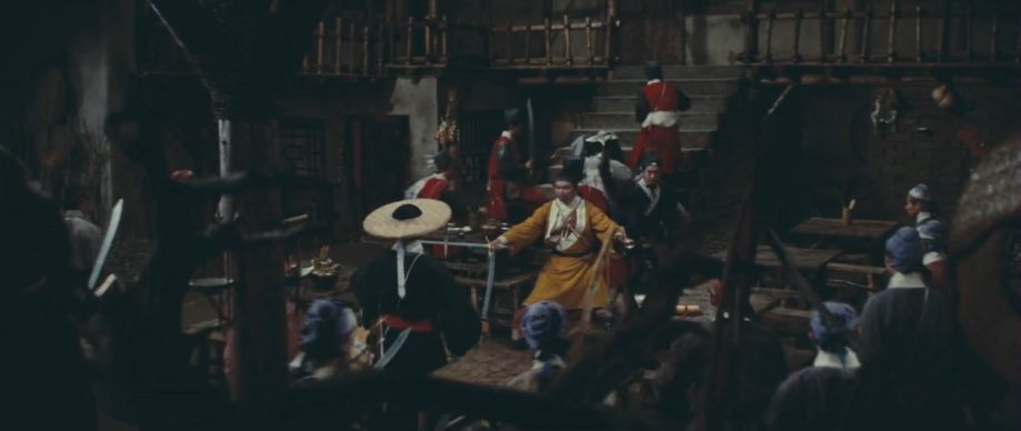 宿の主人ウーの友人だという風来坊の名前はシャオ。その後、宿に戻って来たピイはシャオが並外れた武術の達人だと警戒して、自分たちは刑部(裁判機関)の人間で、指名手配犯を宿で待ち伏せをしているとウソをついて、逮捕現場である宿から離れてくれないかとやんわりと提案。シャオは怪しいと思いつつも了承して、いったん宿を出ます。しかし、宿の主人ウーが帰ってきたため、一緒に戻ってきます。その後、兄弟剣士のジーとチュウ(シャンカン・リンフォン)が宿を訪れます。従業員に入店を断られたジーが激怒して暴れると、諍いを起こしたくないピイは2人を宿に受け入れます。ただ、宴の席で酒に毒を入れて殺そうと画策するも、シャオに見破られて失敗。ピイはシャオとジー兄弟を仲間割れさせて夜のうちに両方殺そうとするも、これも失敗。ここで、宿の主人ウーがツァオに処刑されたユイの参謀だったこと、ジー兄弟はユイ配下の将軍の子供であること(チュウは女であること)が打ち明けられて、宦官の横暴を聞いたシャオも彼らと一緒にユイの遺族の命を守る闘いに参戦することになります。全ての策略を知られたピイたちは自分たちに反抗する4人とやがて訪れるユイの遺族を抹殺しようとするのであったが・・・というのが大まかなあらすじ。