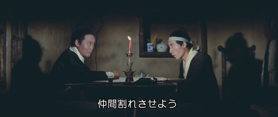 原題は「龍門客桟」。キン・フーが香港を離れて台湾で発表した武侠活劇の古典的傑作。どうも未見だったようで、もっとスケールの小さい密室アクションなのかと思っていたら、広大なロケ地で繰り広げられる大活劇だったんでビックリ。安っぽい邦題に騙されたかも。筆書きのオープニングクレジットからして、只ならぬ格調を漂わせてます。細かい編集でアクロバティックな動き(ジャンプ力が異常)をテキパキと魅せるキン・フータッチがキレキレ。お遊戯のようなチャンバラにも他にはない味があります。冒頭から一定の緊張感を保って進行するサスペンスフルな演出は仰々しい中国らしさ満点の劇伴と絶妙にマッチ。中盤までの二大悪党となるミャオ・ティエンとハン・インチェの面構えも良し。終盤に直接対決となるパイ・インの無敵のラスボス感(喘息持ちの欠点あり)もバッチリ。ツァオによって宮刑に処せられた韃靼人兄弟のエピソードも泣かせます。のちにキン・フー映画のヒロインとなるシュー・フォンもユイの遺族の少女としてセリフなしで出演。主役級のシー・チュンと女剣士シャンカン・リンフォンのチャンバラも優雅で、まさしく一級品の武侠映画でございました。