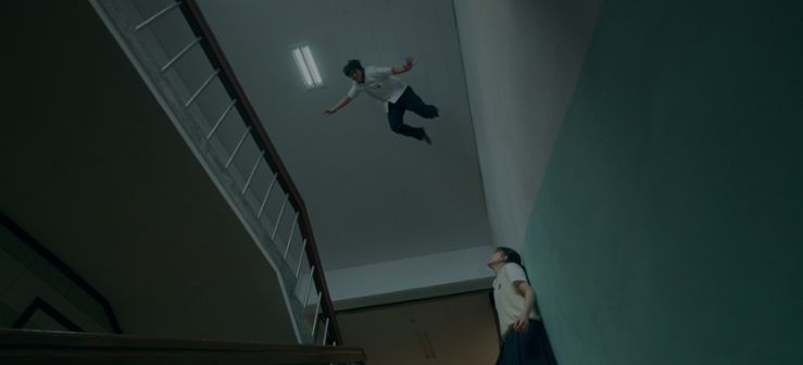 ヒスに片思いしている優等生のガンフン(キム・ドフン)が怪力の持ち主だったり、不適合者とみなされてグレた生徒もいたりと、彼らが通っている高校がフツーじゃないことは物語の序盤から小出しに描かれます。一方で、海外からフランク(リュ・スンボム)が現れて、複数名のターゲットを次々と暗殺。被害者はいずれも超能力を有する国家機関のOB。対するフランクも、どんな負傷もすぐ回復する超能力者です。どうやらこの町には、超能力を隠した人物が身を潜めながら暮らしていて、超能力者の受け皿になっている高校が国家機関と繋がっている模様。ボンソクの母ミヒョンも五感が異常に発達した超感覚を持っていて、ボンソクは亡き父の持っていた飛ぶ力を先天的に有しています。そして、ボンソクの能力に気づいたヒスも回復能力を持っていて、父ジュウォンも同じ能力を持っています。ということは、子供たちの能力を隠して生きている親たちも暗殺者フランクの標的となっていて・・・というのが大まかなあらすじ。