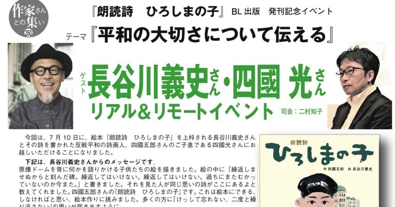 『朗読詩 ひろしまの子』BL出版 発刊記念イベント テーマ 『 平和の大切さについて伝える』ゲスト: 長谷川義史さん 四國 光さん報告レポ-ト|二村知子 隆祥館書店