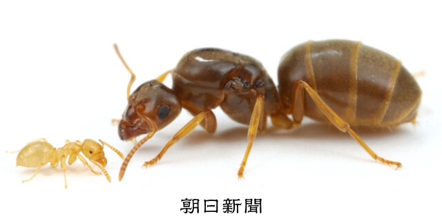 >その後、働きアリはテラニシクサアリの女王アリに口移しで食料を与えた。