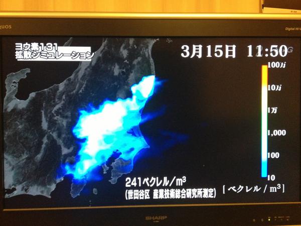 3.15 世田谷区 産業技術研究所のヨウ素拡散図 #NHK。東京もこんなに… pic.twitter.com/LMd4tzDI