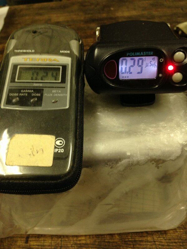 13400Bq/kgのキノコ試料の上に置くと、ガイガーの数値はゆっくりとしか上がっていきません。CsIの方はほぼ一瞬。 pic.twitter.com/ooIx2swE