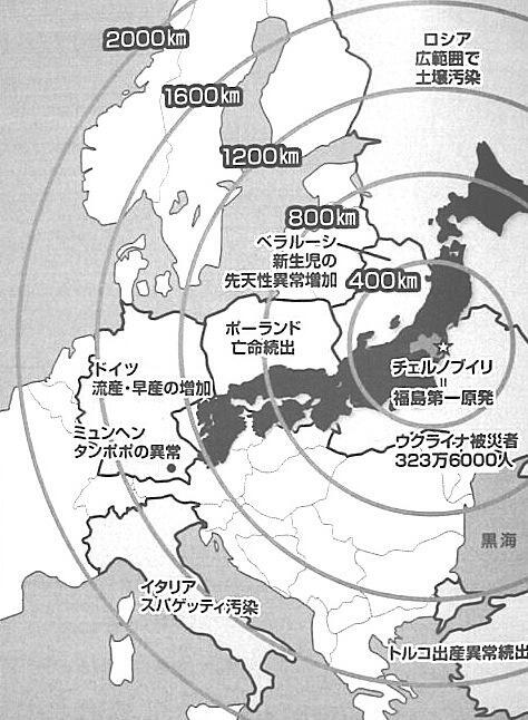 自分は国内避難は最初から無意味ではと考えていた。根拠はと言うと、世界地図だ。ベラルーシからトルコ、ドイツ、ポーランドの距離を計れば直ぐにわかる。日本列島なんて所詮は大きな島。距離感が違う。世界全土の地図だけ見てもわかる。福島と東京。目と鼻の先。安全距離は日本人が勝手に作ったもの。