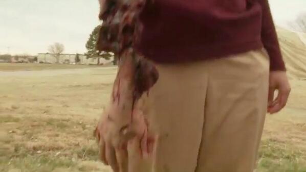 一度解剖をやってみればわかるが、人間の骨を途中で切断するようなことなんて、大きなのこぎりでもなければ不可能。皮膚と筋肉と骨をきれいに切るなんて芸当ができるはずがない。しかも、周りの人間はほとんど無傷。少なくとも大きな金属片などが飛んでいるわけではない。